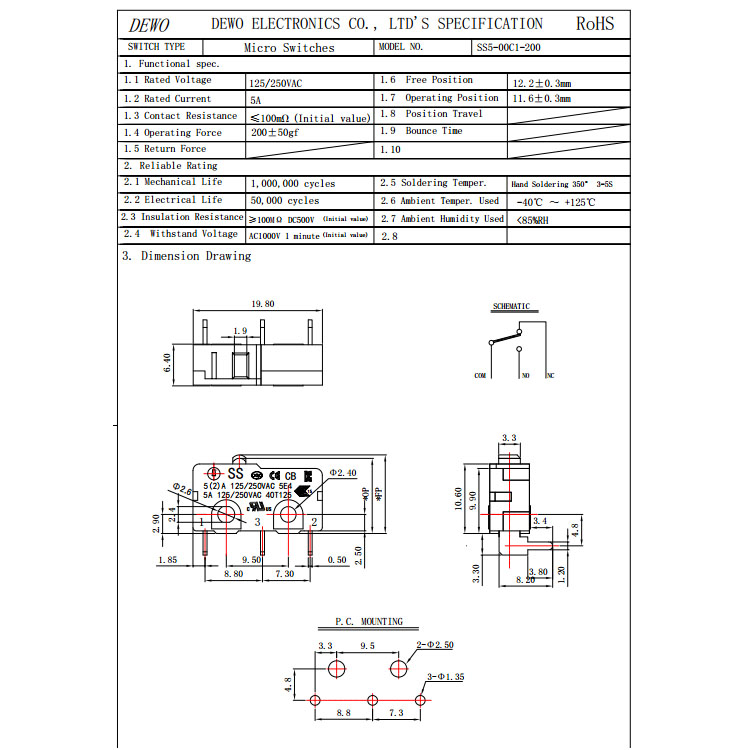 Function: SPDT/SPST-NO/SPST/NC